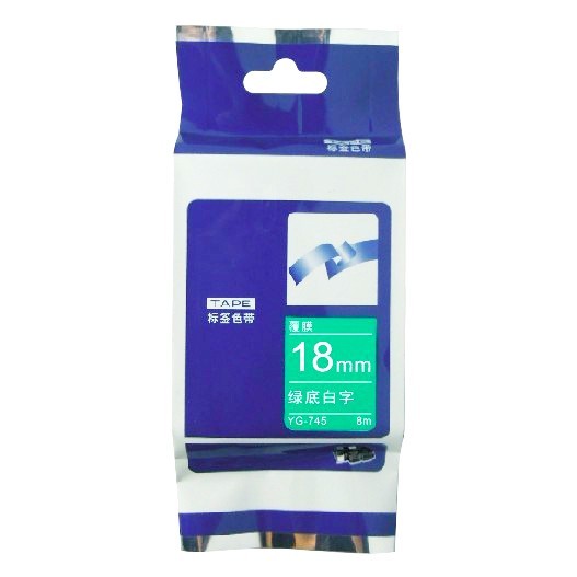 Páska kompatibilní s Brother TZ-745 / TZe-745, šíře 18mm, délka 8m. Bílý tisk na zeleném podkladu. Samolepicí pásky zaručují velmi snadnou aplikaci. Pásky jsou odolné proti vodě.