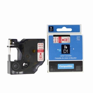 Páska kompatibilní s Dymo 45012, šíře 12mm, délka 7m. Červený tisk na průhledném podkladu. Samolepicí pásky zaručují velmi snadnou aplikaci. Podélné naříznutí podkladu umožňuje pohodlné oddělení štítku. Pásky jsou odolné proti vodě.
